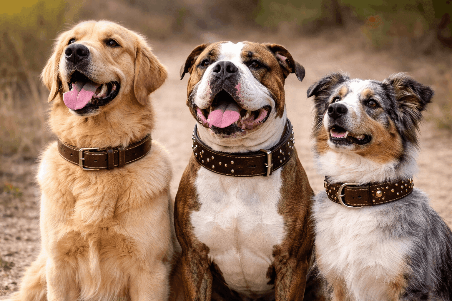 • Wide leather collars: Designed to distribute pressure evenly, making them suitable for larger or stronger dogs.