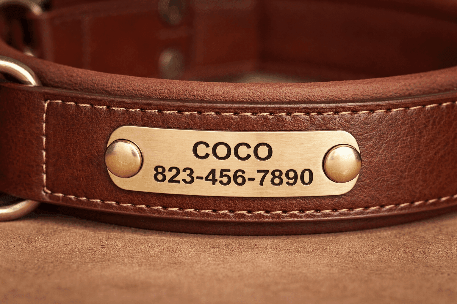 🐶 Leather Dog Collar with Name Plate – Personalized, Durable & Comfortable